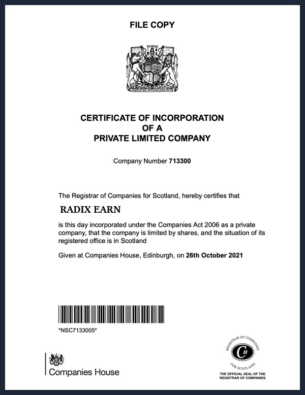 radix-earn.org is a team of people focused on the results of their work. Under the leadership of Alexander James, we create an asset management company whose synonyms are: reliability, guarantee and security of the funds entrusted to us. We follow proven methods that were developed long before the launch of the online platform. Our company was registered on October 26, 2021 and from the very first days of operation, in consultation with capital markets experts, we have developed methods that allow our investors to achieve great passive income.